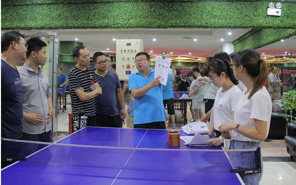 接下來(lái)進(jìn)行的是乒乓球、臺(tái)球比賽,兩項(xiàng)運(yùn)動(dòng)同時(shí)展開(kāi)。乒乓球比賽共有18位員工參加。每個(gè)員工都不甘示弱,使出自己的看家本領(lǐng)。搓球、刁球、旋轉(zhuǎn)球、反手球,你來(lái)我擋、戰(zhàn)況激烈,看的人眼花繚亂。