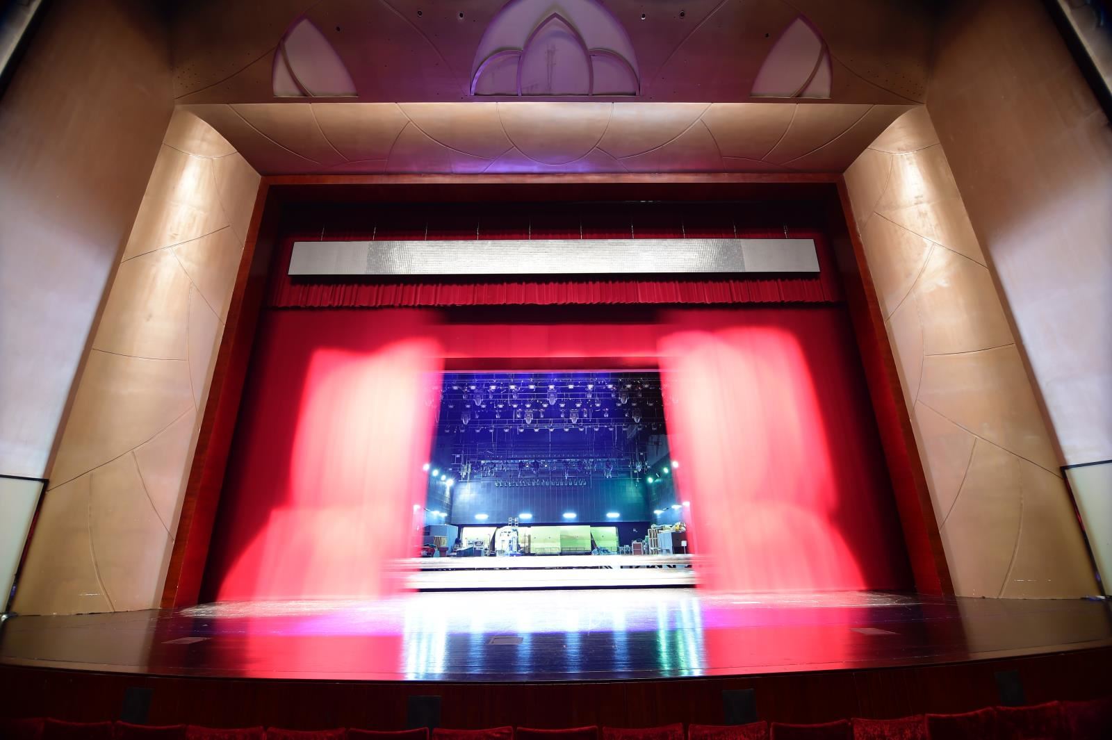 設(shè)置于舞臺臺口處的大幕機,可具有對開、提升、斜拉功能,電動驅(qū)動、調(diào)速,重復(fù)操作反應(yīng)速度快。大幕對開可手動操作。