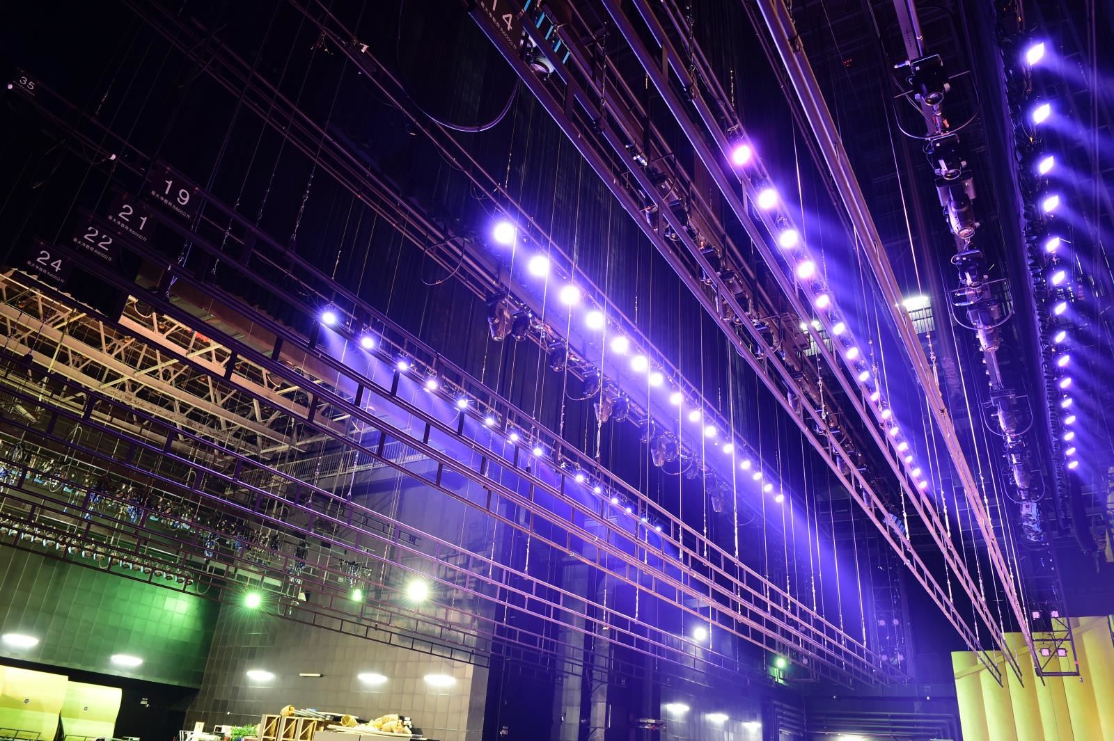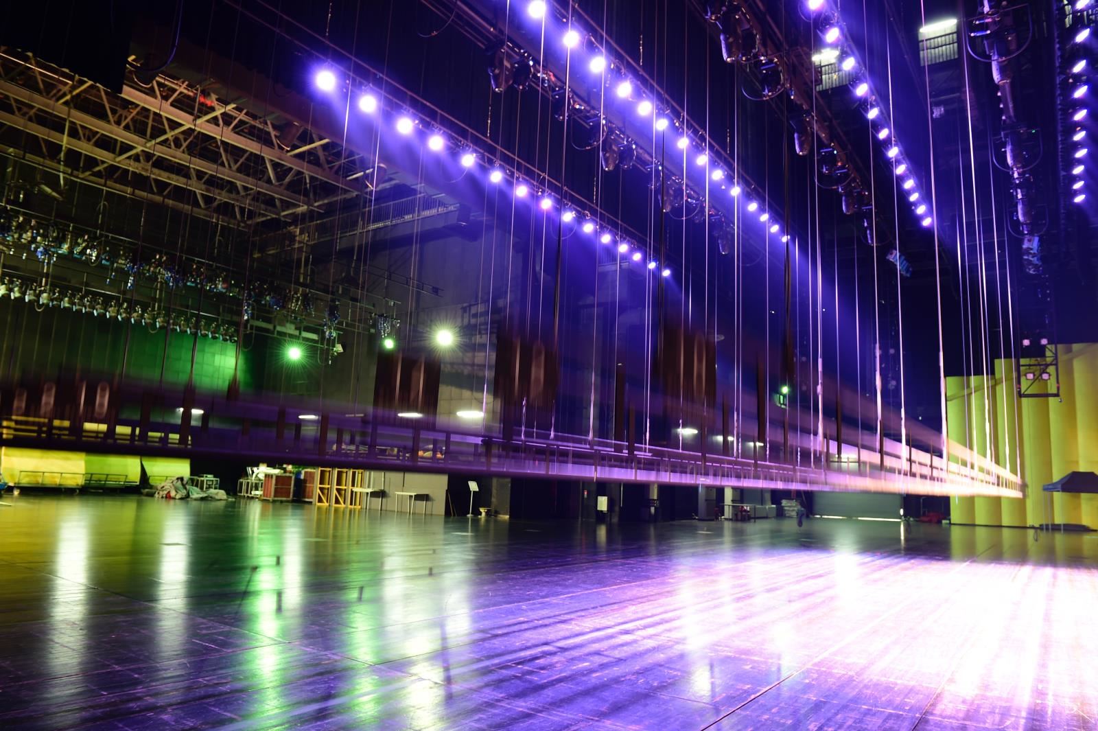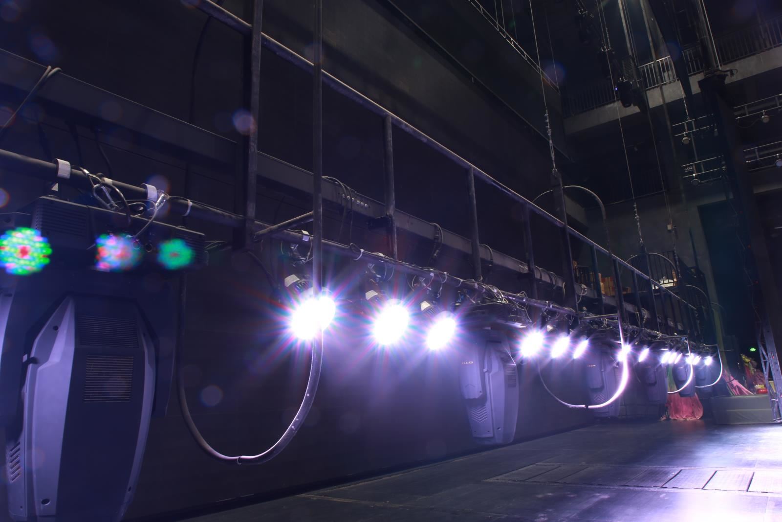 燈光吊桿位于主舞臺上方,平行于舞臺橫軸。少數(shù)劇院有側(cè)燈光吊桿,垂直于舞臺橫軸。