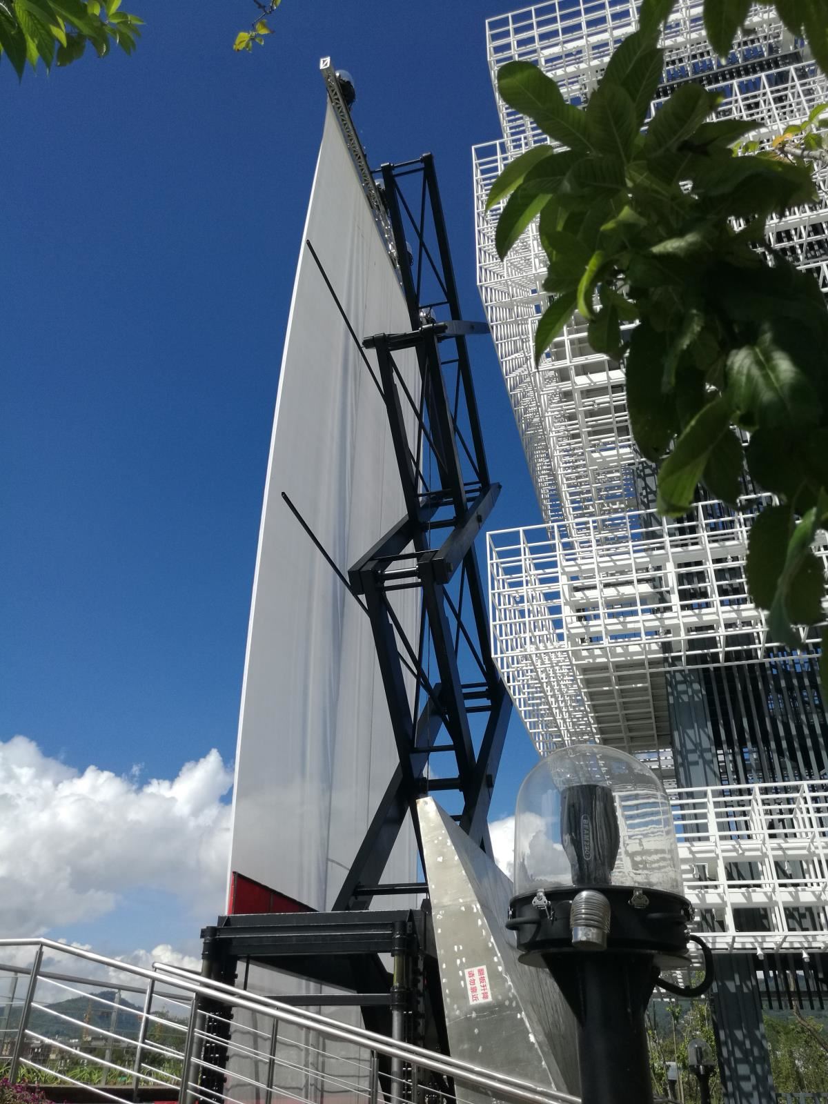 高難度淺基坑大行程無導(dǎo)向大型戶外升降巨型投影框架系統(tǒng)