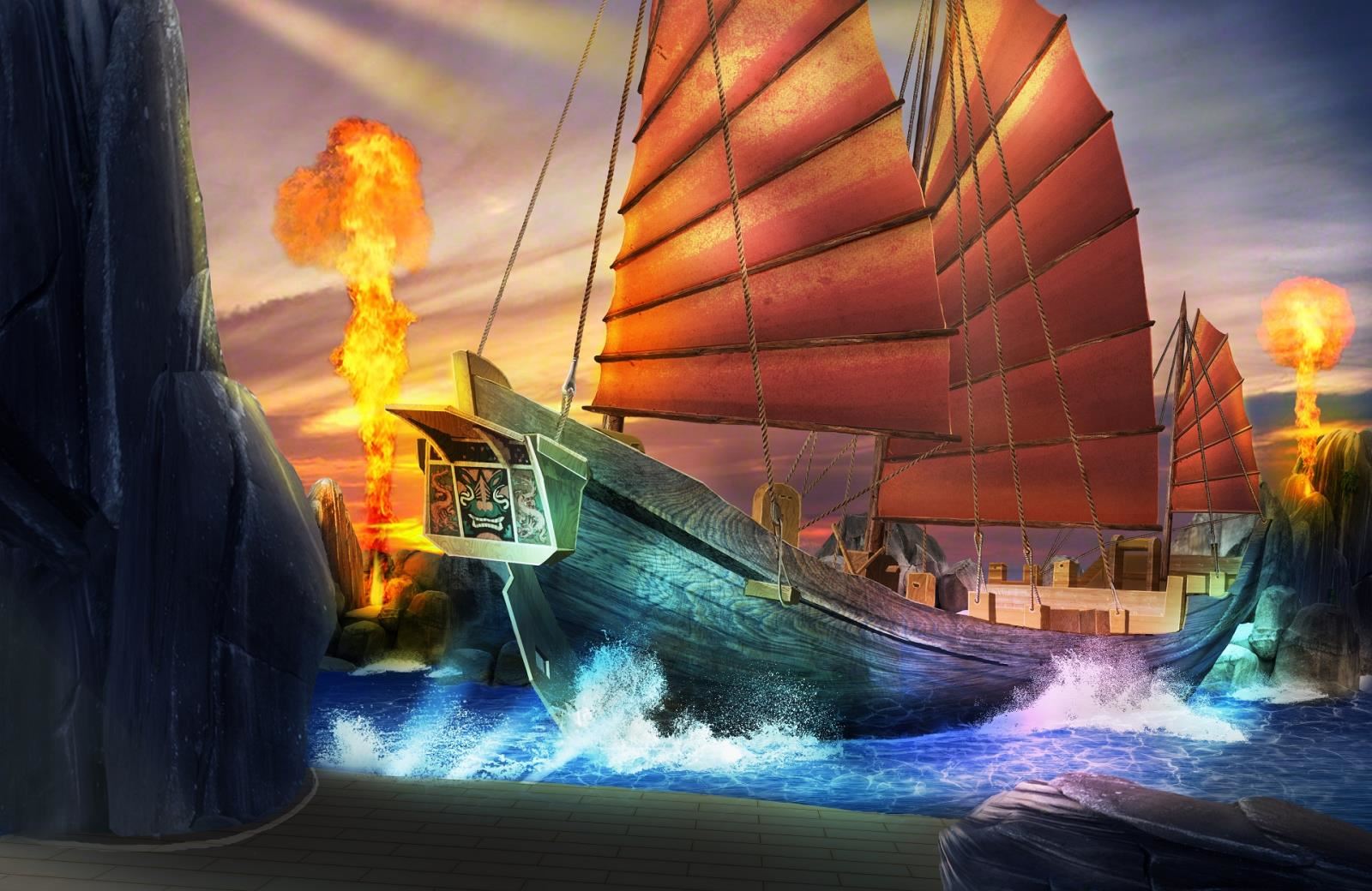 (1)大船可實現(xiàn)前后左右顛簸的動作,呈現(xiàn)大海中航行的動感效果;