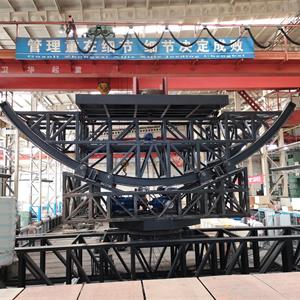 (3)海盜船動作功能:大船的底部在長度方向為圓弧面,船體可沿長度方向前后滑移,呈現(xiàn)在巨浪中前后擺動的效果,且前后擺動的幅度60°。